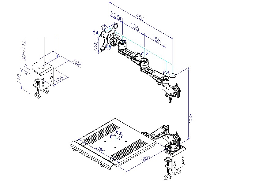 ノートパソコン&サブモニター用ダブルアーム