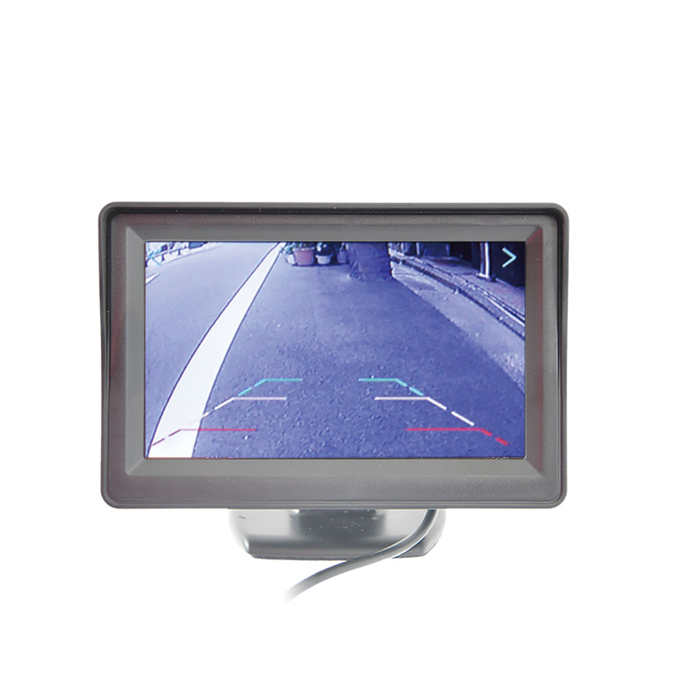 後方に取り付けたカメラの映像は、運転席のモニターにうつります。ガイドがあるのでバックでの駐車が苦手な方も安心です。