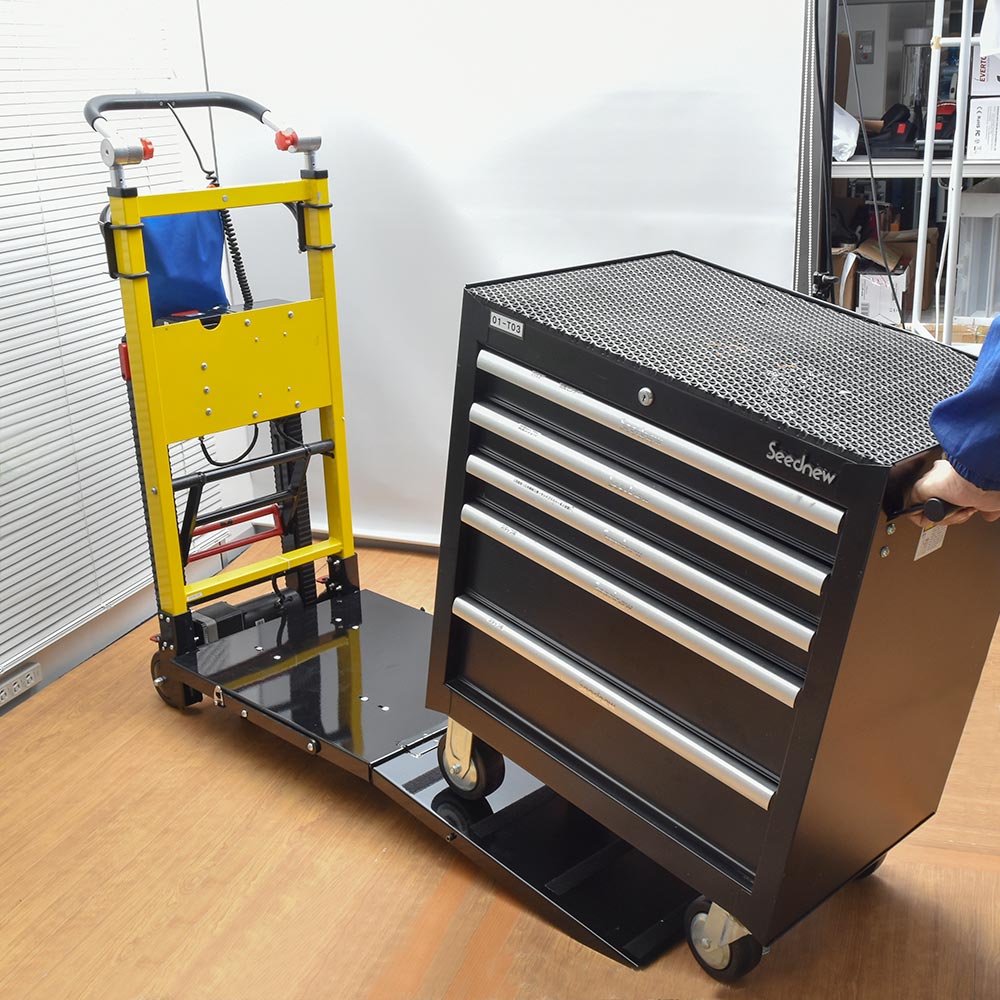電動階段のぼれる台車に、手で持てないような重い荷物を載せるのがスムーズに。
