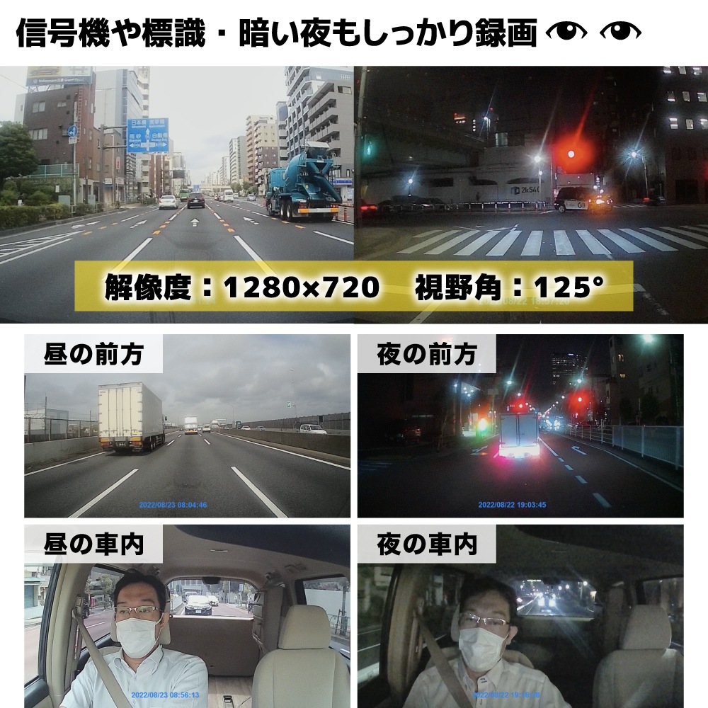 | 動画解像度 | 前方・車内カメラ:1280×720 |
