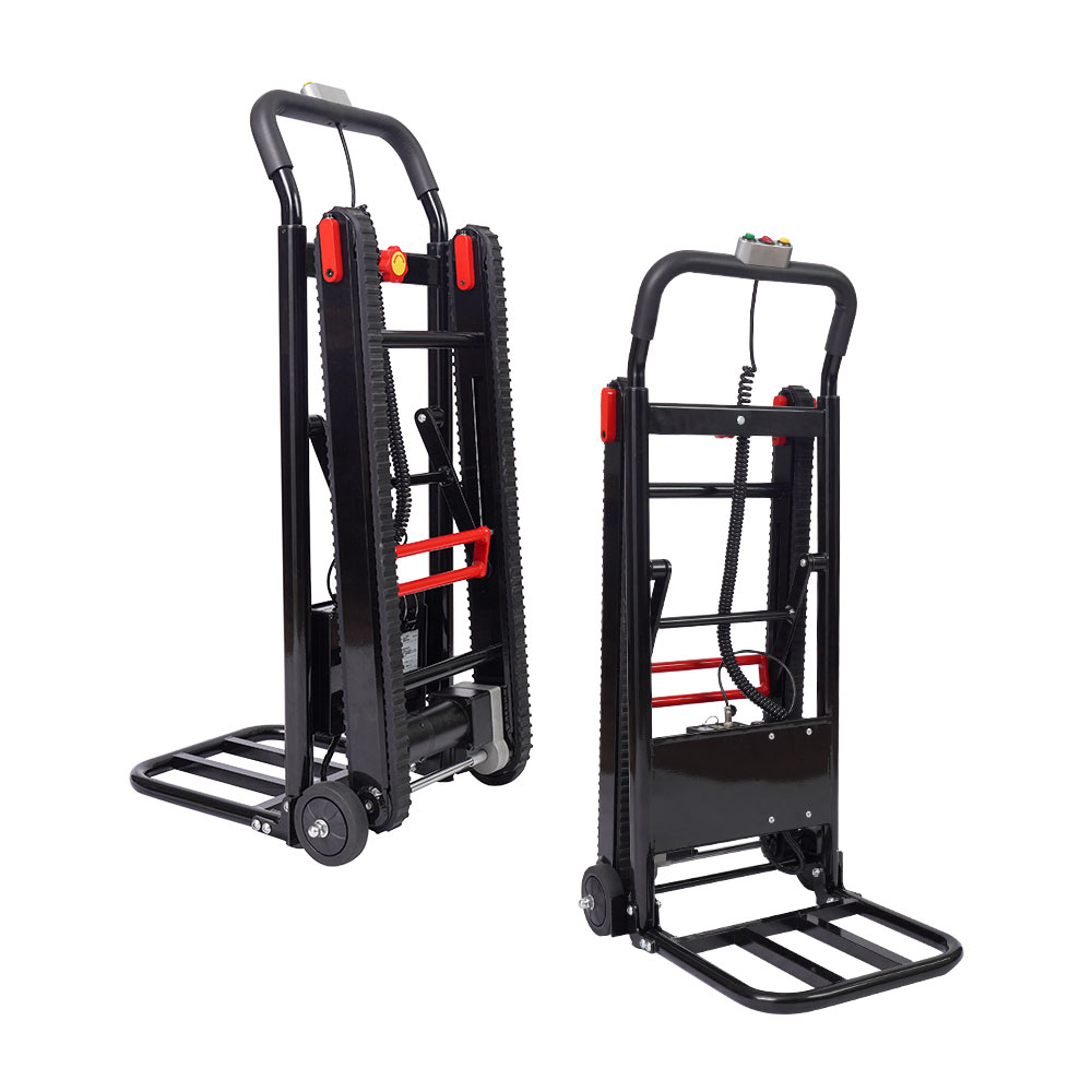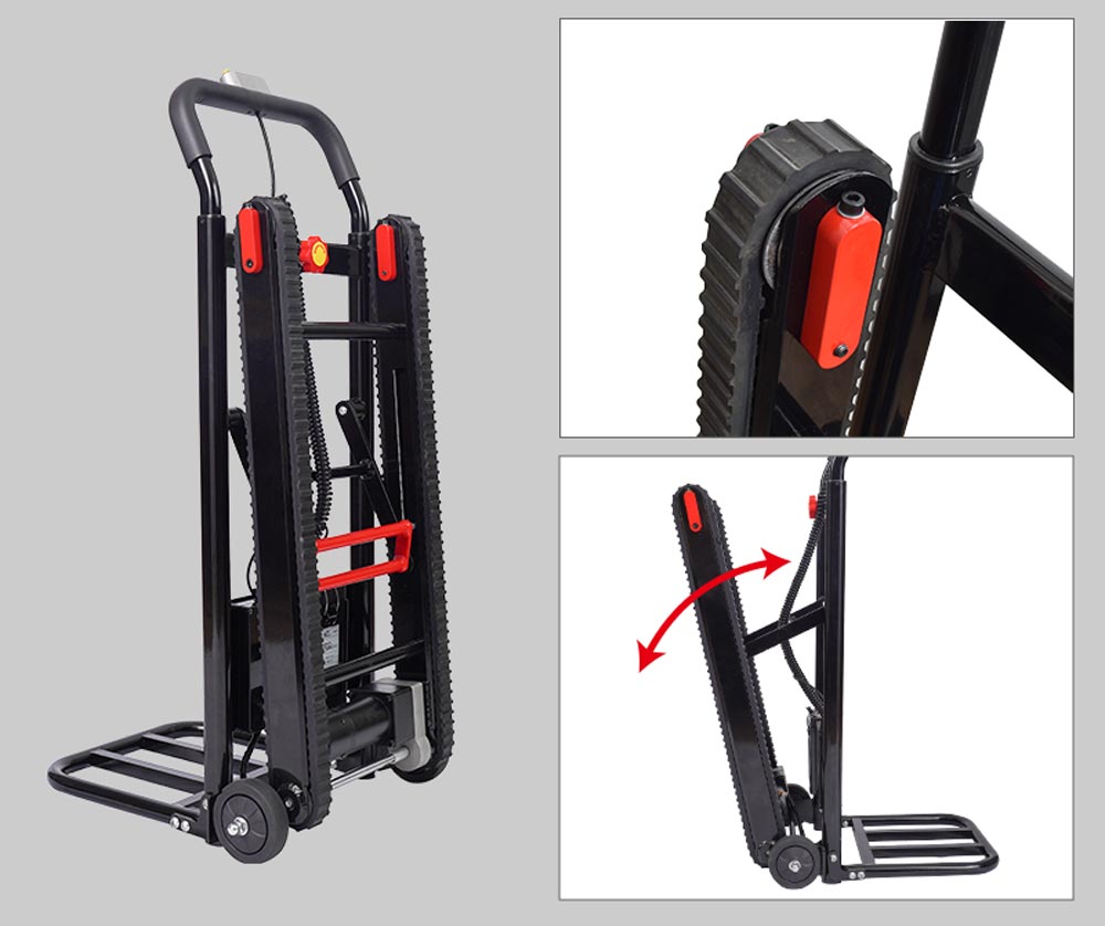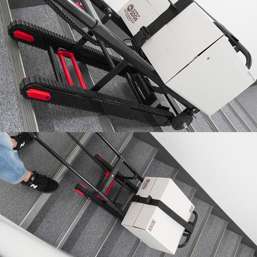 ※階段を昇降する電動の走行ベルトが台車に付いています。平地は通常の台車と同じ手動になります。